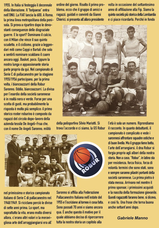 La nostra storia… a puntate! Dal 1955 ai giorni nostri, raccontata dai protagonisti con le fotografie dell’epoca. Una storia di successi, la storia della Robur Basket Saronno.